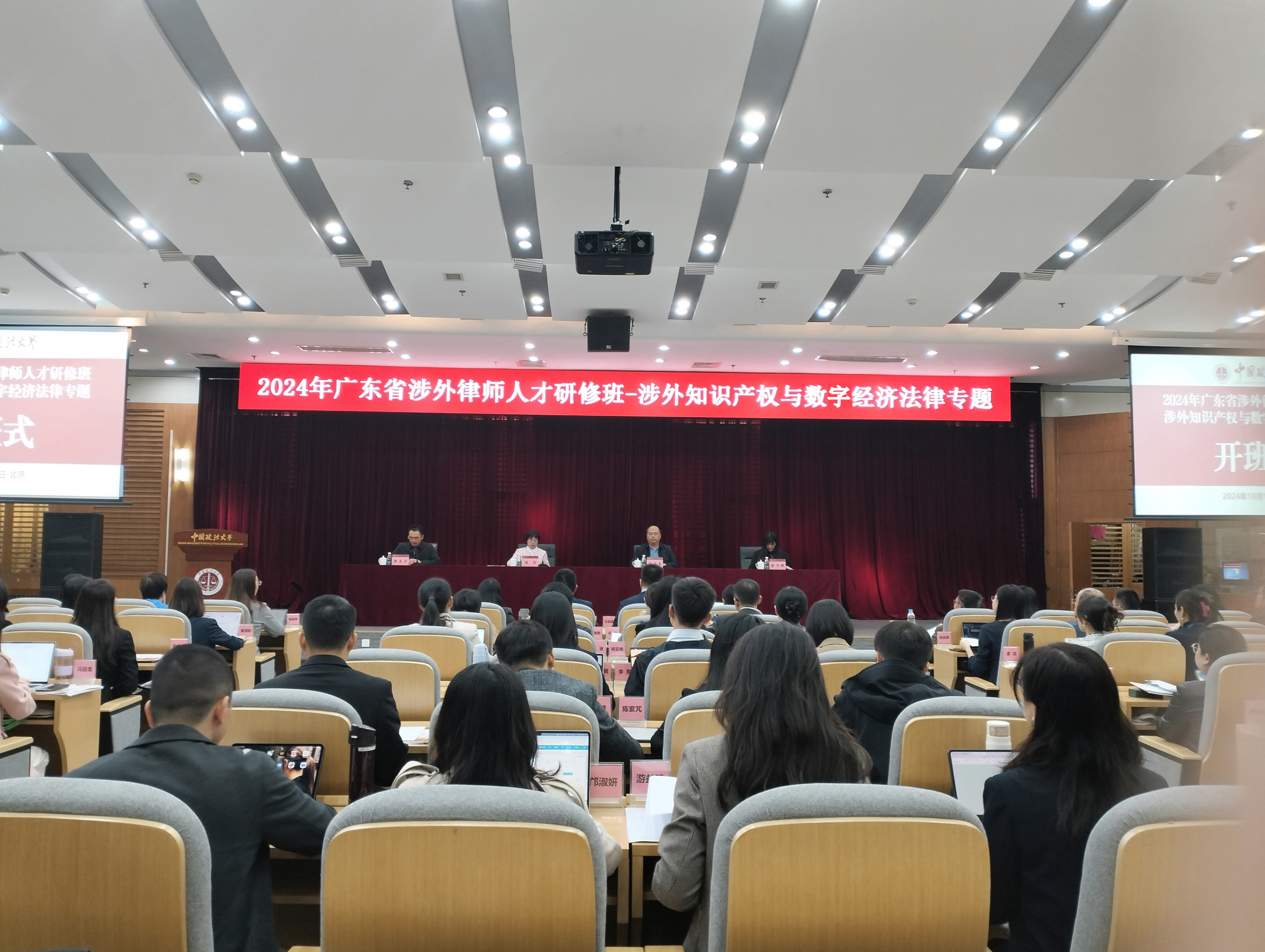 2024年10月10日,由广东省司法厅、广东省律师协会主办,中国政法大学承办的广东涉外律师人才研修班——涉外知识产权与数字经济法律专题在北京开班。广东省司法厅律师工作管理处副处长郑宙,中国政法大学中央政法培训学院执行院长、继续教育学院院长宋乃龙,中国政法大学中央政法培训学院执行副院长郑永吉出席开班仪式,来自全省各地共120名涉外律师参加本次培训。